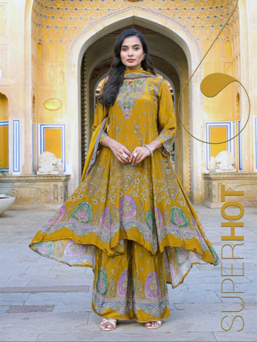 জটিল প্যাটার্নের কাজ: কামিজ এবং শারারা সূক্ষ্ম ও বিস্তৃত প্যাটার্ন দ্বারা সজ্জিত, যা পোশাকের শৈল্পিকতা বাড়ায়। নকশাগুলি পোশাকের প্রবাহ এবং ডিজাইনকে উন্নত করার জন্য চিন্তাভাবনা করে স্থাপন করা হয়েছে।