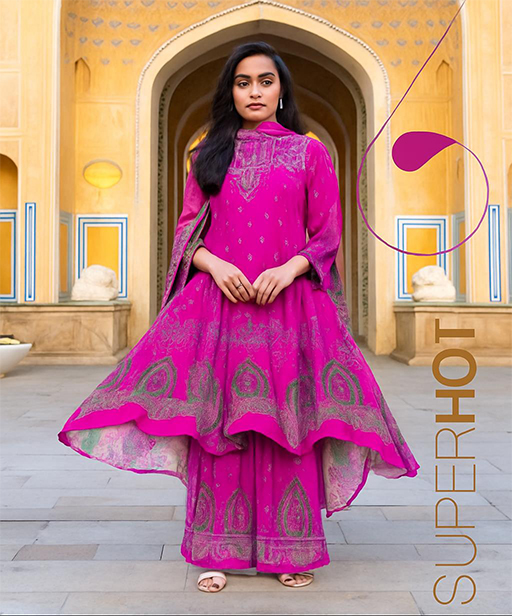 Anzela এর মনোমুগ্ধকর ফিউশিয়া পোশাকের সাথে কমনীয়তায় পা রাখুন, যা আপনার উপস্থিতি জানান দিতে ডিজাইন করা হয়েছে। এই অত্যাশ্চর্য তিন-পিসের সেটে রয়েছে একটি সুন্দরভাবে তৈরি কামিজ, একটি মানানসই শারারা এবং একটি ম্যাচিং দোপাট্টা। প্রতিটি পোশাকেই ঐতিহ্যবাহী আকর্ষণ এবং আধুনিক শৈলীর মিশ্রণে জটিল নকশা ফুটিয়ে তোলা হয়েছে।